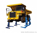 г/п 30 тонн. Четырехстоечный. Подкатной. Электрогидравлический. В подъемнике применена электронная синхронизация подъема и опускания подхватывающих кареток. Подъем за колеса, комплектуется 2 страховочными подставками. Для проведения ремонта грузовой карьерной, дорожной, строительной техники.
