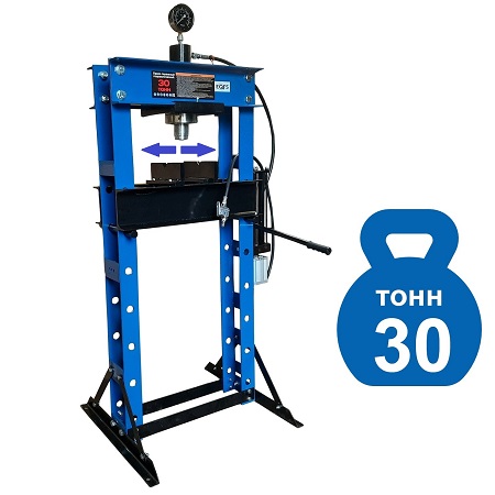 Усилие 30 тонн. Управление ручное/ножное. Полностью сварная рама. Гидроцилиндр с пуансоном перемещается по всей ширине каретки, клапан защиты от перегрузки, манометр, ручная лебедка. Ход поршня 150 мм. Рабочее окно 540х1270 мм. Рекомендуется для выпрессовки подшипников, деталей машин, втулок и т.п. в автосервисе, Гараже и СТО. Доставка РФ, РБ, Армения, Казахстан, Киргизия.