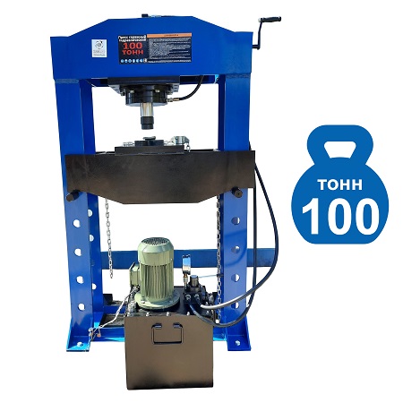 790 кг металла. Сварная конструкция рамы. Напольный, электрогидравлический с двухскоростным насосом усилием 100 тонн. Мощность мотора 3 кВт. Напряжение 380В. Ход поршня 300 мм. Рабочее окно 690х820 мм. Позволяет выпрессовывать любые подшипники. Доставляем гидравлический пресс по всей территории РФ и странам ТС.