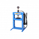 Усилие 10 тонн. Настольный. Ручной. Для запрессовки подшипников, деталей машин, втулок и т.п. в автосервисе, мастерских по ремонту лодочных моторов, велосипедов и т.п. Гидроцилиндр с пуансоном имеет возможность перемещения по всей ширине рамы. Контроль усилия – визуально по шкале манометра. Интервал пуансона 135 мм. Рабочее окно: 400 x 350 мм.