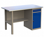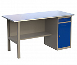 Верстак однотумбовый поставляется в разобранном виде. Нагрузка на столешницу до 600 кг. Стандартный цвет: корпус - серый глянец RAL 7030, ящики и двери тумб - синий RAL 5017. Размеры:855x1400x700 мм. Вес: 86 кг.