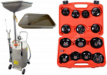 Комплект из TS-2085 маслосборник. Для быстрого слива и откачки щупами масла и антифриза из ДВС, КПП и мостов всех авто. В комплекте: Сливная чаша. Щупы гибкие 6 шт. Лоток для сливной пробки. Металлические пистолеты для откачки масла. Цифровая индикация уровня разрежения в установке. Обрезиненная ручка для транспортировки. Вмещает 90 л. = Бак 80л + сливная воронка 10л. + ES0901 Набор съемников масляных фильтров ("чашки") - 15 шт.