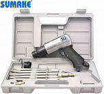 Пневмозубило с набором зубил 4шт удлиненное. Ход поршня 92мм. Частота ударов 2200уд/мин. Рекомендуется для резки металла толщиной до 2мм, для кузовных и шиномонтажных работ, удаления клёпок, срезки болтов, гвоздей и т.п. Также рекомендуется для отбойных и демонтажных работ по бетону.