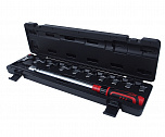 Ключ динамометрический двухстороннего действия. Посадочный квадрат: 1/2". Диапазон усилий затяжки: 40-200 Н·м. Длина: 531 мм. Количество зубцов: 24Т. Надежный храповый механизм. Хромированная поверхность высокого качества. Рукоятка изготовлена из нетоксичного экологически чистого материала ABS. Штампованная шкала. Сертифицирован DIN-ISO и ASME. + насадки 13-30 мм (набор 11 предметов).