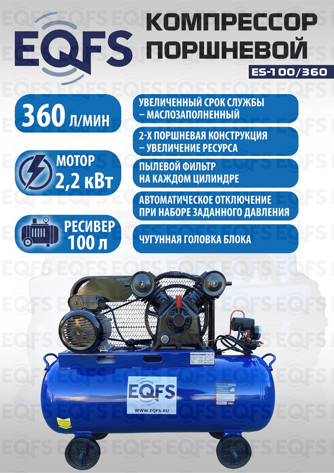 Компрессор воздушный, передвижной, поршневой, масляный, двухцилиндровый. Быстро достигает нужного давления. Двухпоршневая головка двигателя уменьшает износ деталей и увеличивает срок службы. Ремённый привод — предохранят мотор от поломки. Идеальное решение для небольшой мастерской, шиномонтажа, гаража или дачи. Давление 8 Атм. Производительность 360 л/мин. Мощность 2.2 кВт. Напряжение 220В. Ёмкость ресивера 100 л. Гарантия 12 месяцев.