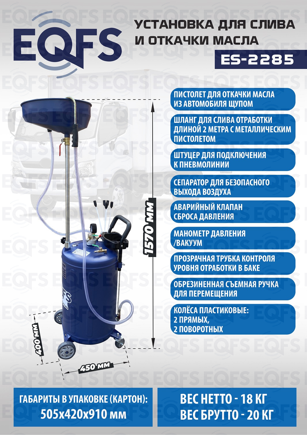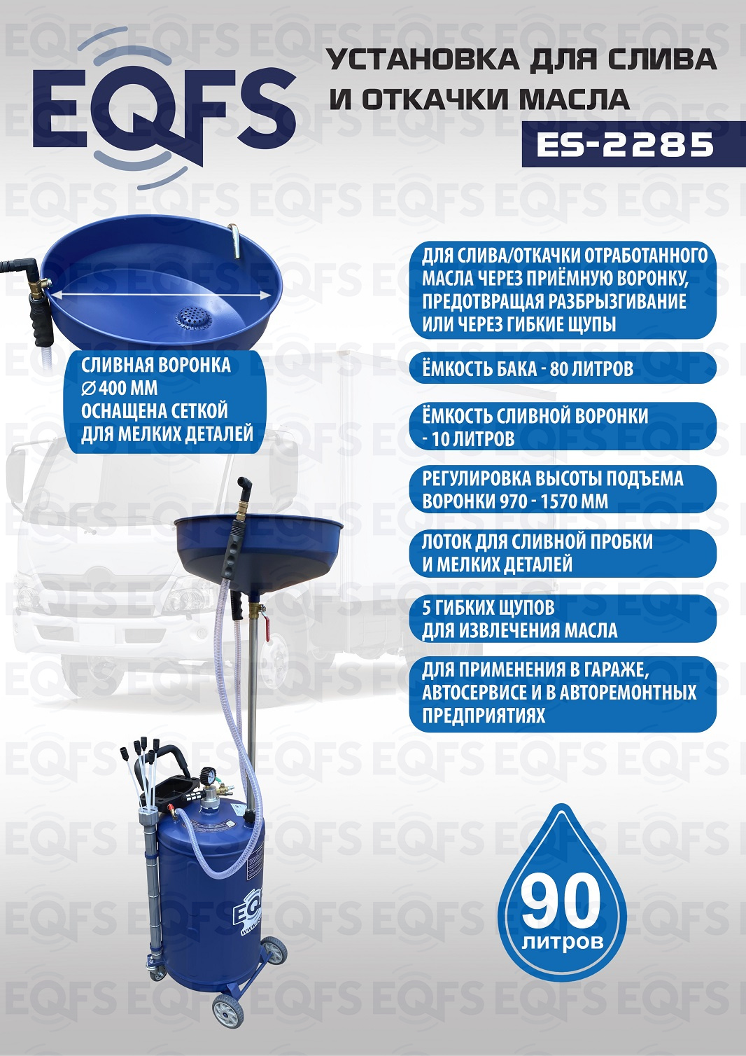 Технические особенности установки для слива и откачки масла щупами ES-2285: