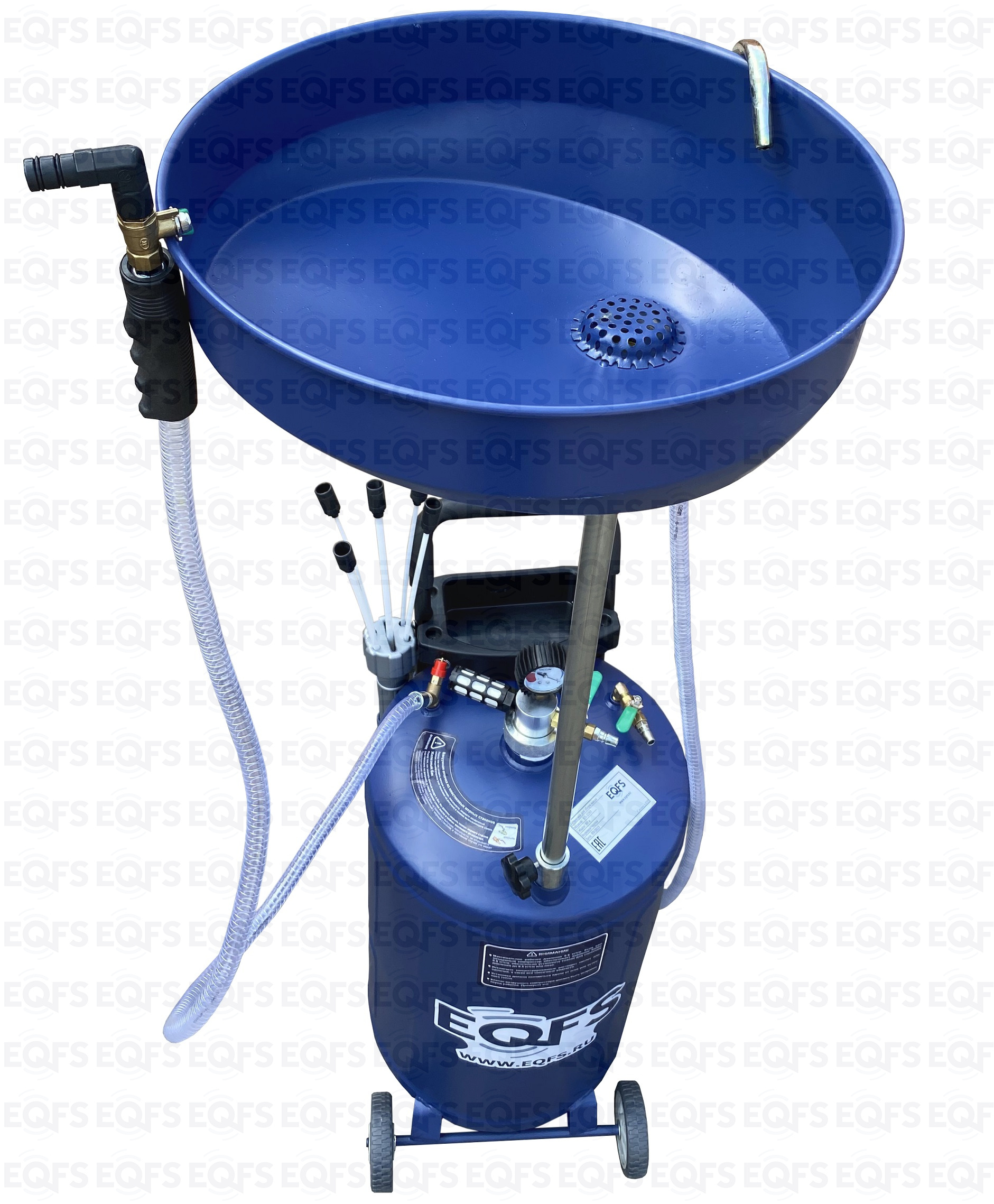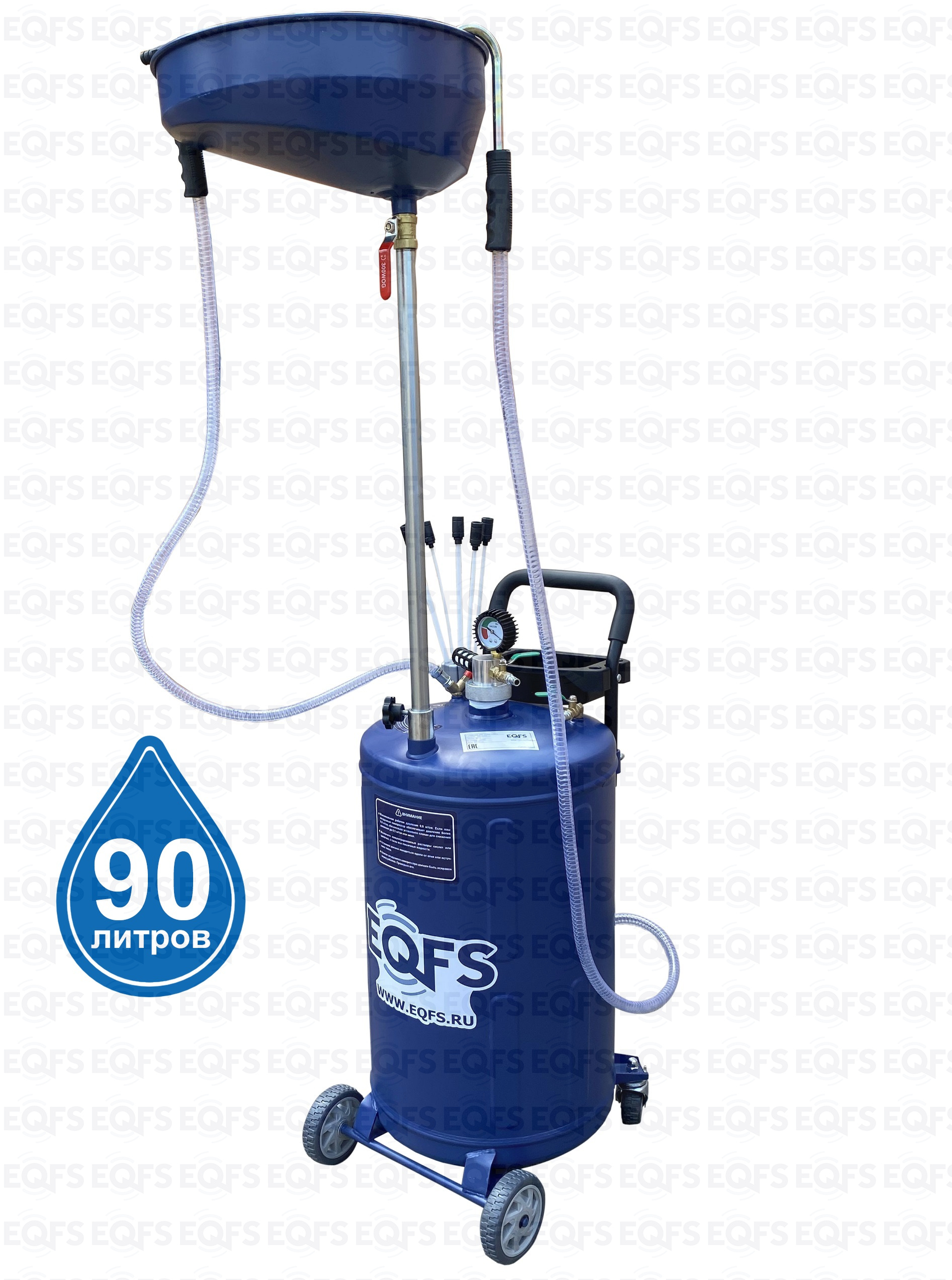 Установка для слива и откачки масла вмещает 90 литров отработанного масла и антифриза. Бак 80л + чаша (воронка) 10л.