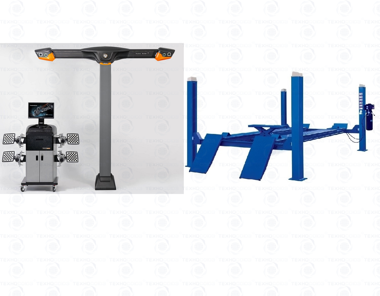 Комплект F4D-4 Подъемник 4-хст. г/п 4т,эл/гидр. с траверсой+T 7204 TAS Стенд сход-развал 3D