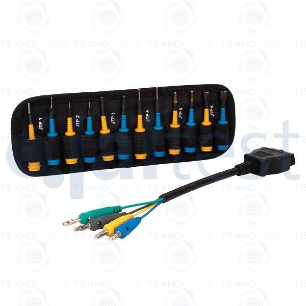 Комплект дополнительных насадок Jaltest JTP94. Комплект диагностических адаптеров включает в себя: Плоская клемма 1,7 x 0,6мм (пара) Круглая клемма Ø 1,5мм (пара) Круглая клемма Ø 1,5мм "мама" (пара) Круглая клемма Ø 1,5мм "папа" (пара) Круглая клемма Ø 3мм "папа" (пара) Плоская клемма 7 x 0,8мм (пара) Плоская клемма 3,3 x 0,7мм (пара) Круглая клемма Ø 3,5мм "папа" (пара) Круглая клемма Ø 4мм "папа" (пара) Круглая клемма Ø 2,5мм "мама" (пара) Универсальный адаптерный провод Кабель дополнительного питания Провод для подключения к прикуривателю