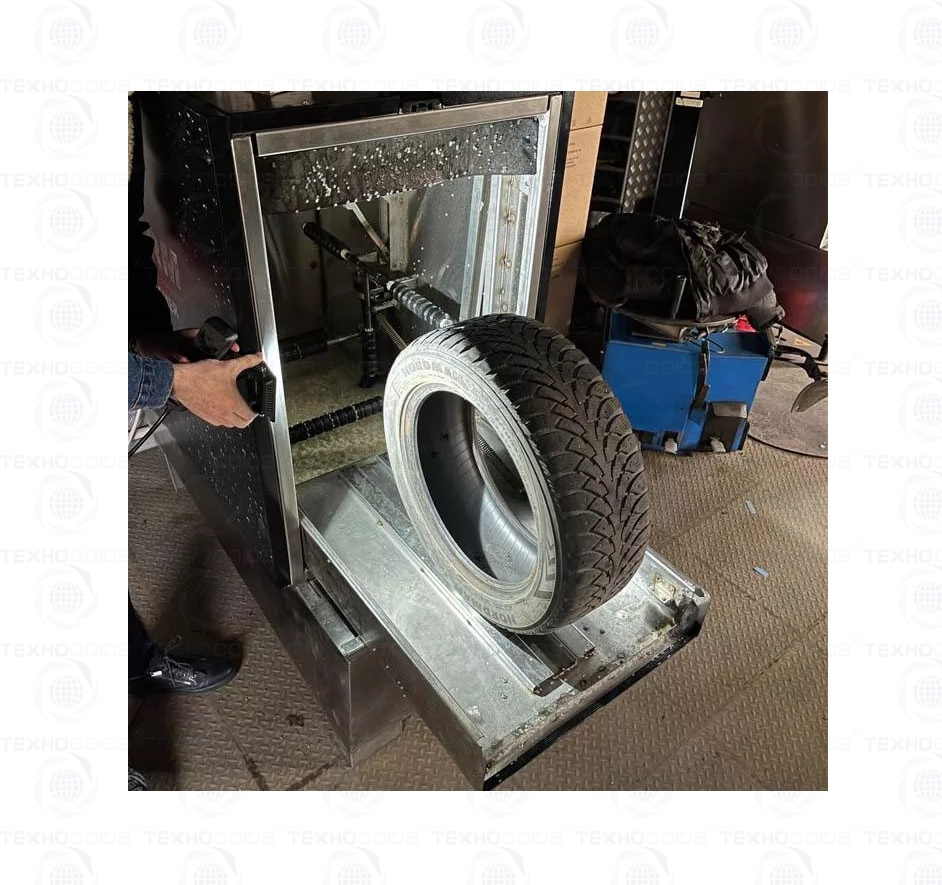 Мойка для колес является полностью автоматизированной и запускается при закрытии дверцы, что способствует сократить ручной труд слесаря и повысить качество обслуживания при балансировке и шиномонтаже колес. В качестве моющего элемента выступают пластмассовые гранулы, которые подаются в распылительные сопла вместе с водой под высоким давлением, а сама моечная машина работает по замкнутому циклу, что позволяет ей функционировать без подключения к канализации и водопроводу.