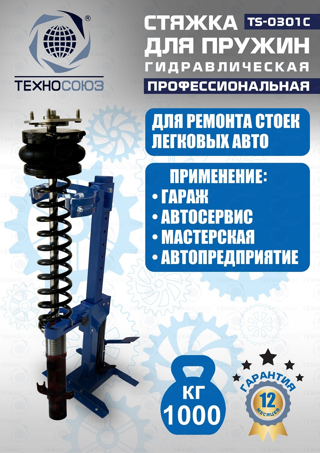 Экономит время. Облегчает монтаж / демонтаж особо прочных пружин со стойки. Профессиональная. Напольная. Гидравлическая. Ножной привод подъема и опускания. Для стяжки пружин легковых автомобилей. Усилие 1000 кг. Длина пружины 210-550 мм. Диаметр пружины 102-380 мм. Ход - 340 мм.