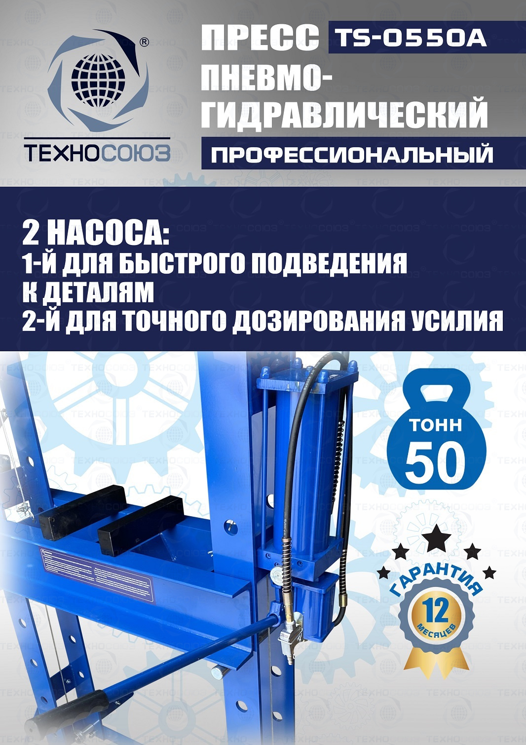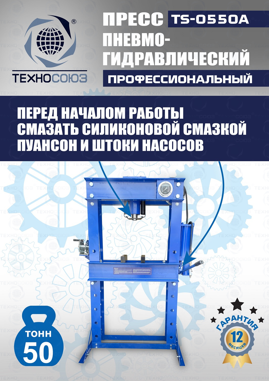 Конструктивные особенности TS-0550A Пресс 50 тонн пневмогидравлический / ручной :