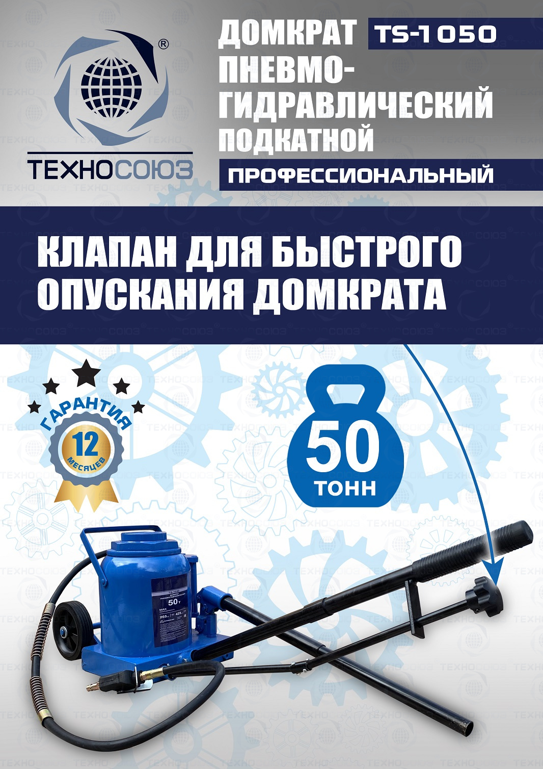 Технические особенности TS-1050 грузовой подкатной пневмогидравлический домкрат 50 тонн: