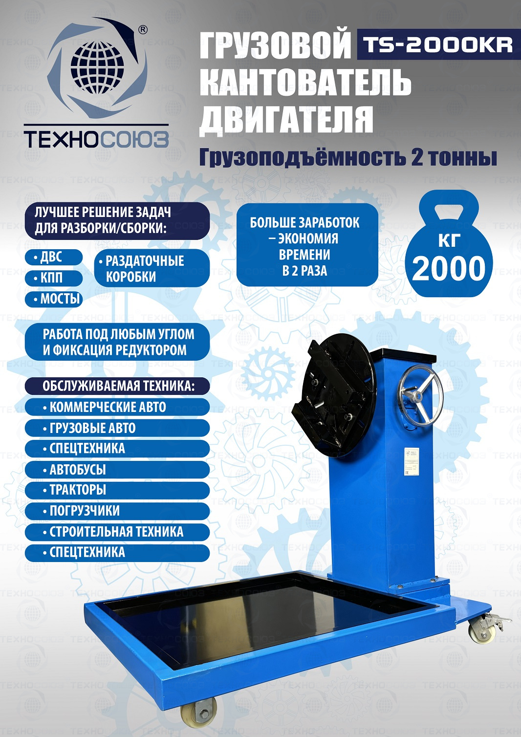 Технические особенности TS-2000KR грузовой кантователь двигателя с редуктором: