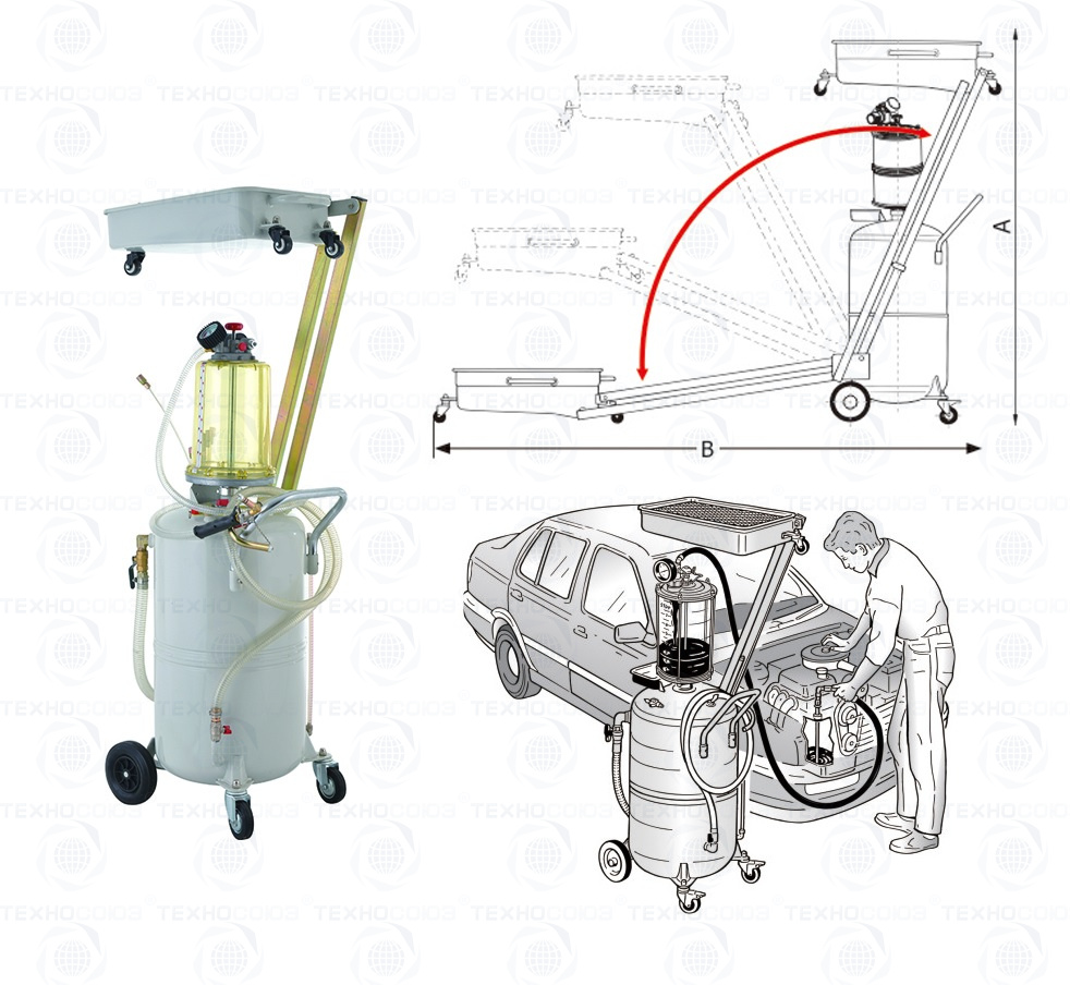 Маслосборник для слива и откачки масла и технических жидкостей самотёком или с откачкой через щуп.